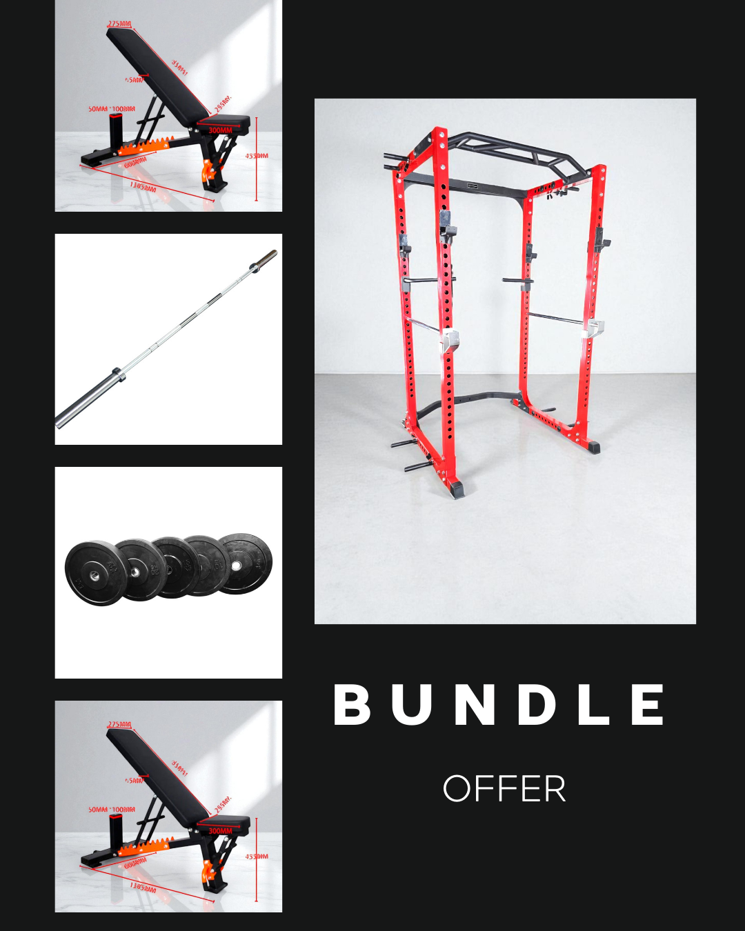 With a heavy-duty power rack, adjustable bench, premium weight plates, and Olympic dumbbell handles with plates, you’ll have the perfect foundation to smash your fitness goals without compromise.